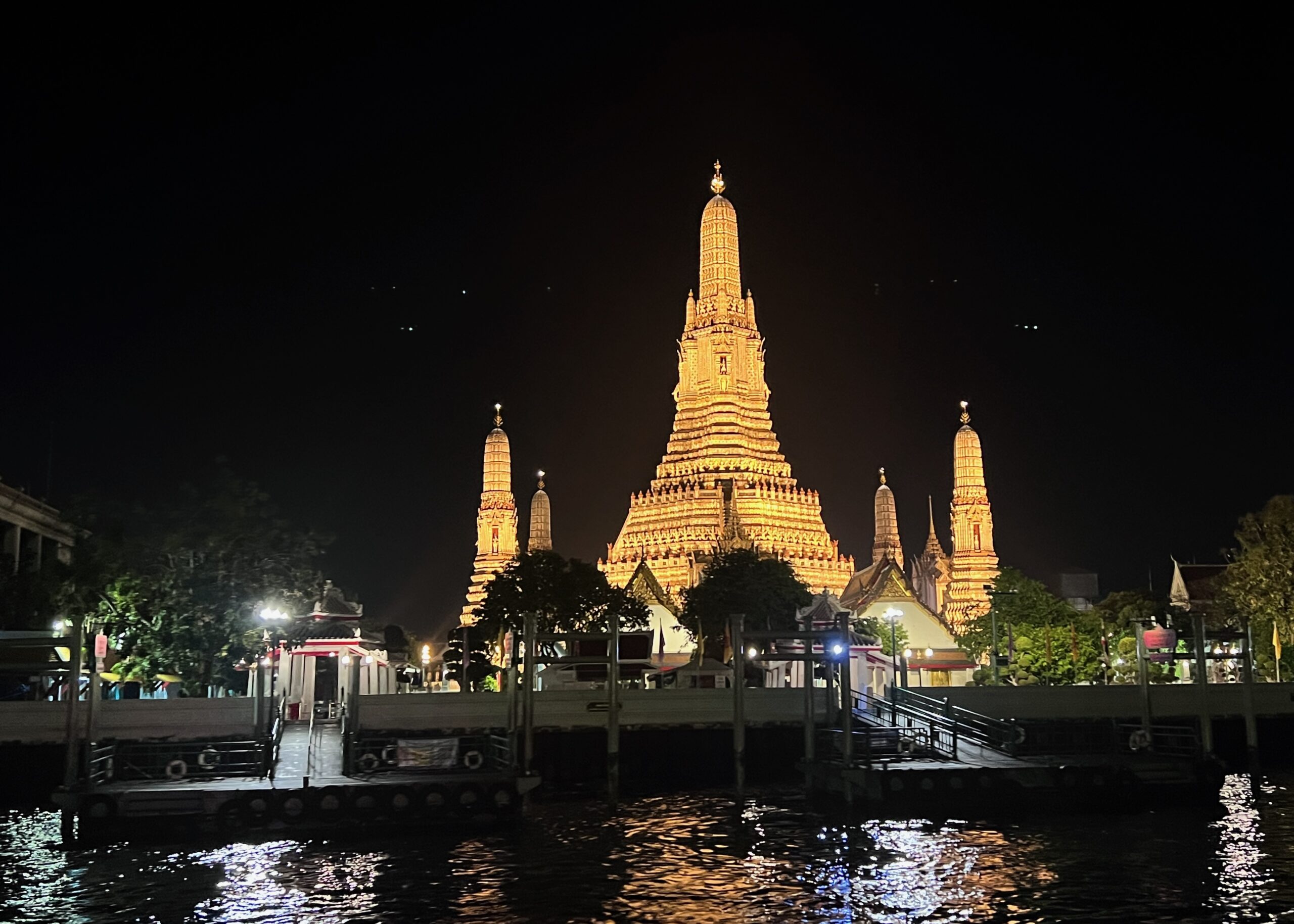 Most river cruises, particularly dinner cruises, typically last around two hours, offering ample time to soak in the atmosphere and enjoy the sights. As you glide along the Chao Phraya, you’ll be treated to breathtaking views of some of Bangkok’s most iconic landmarks, beautifully illuminated against the night sky: